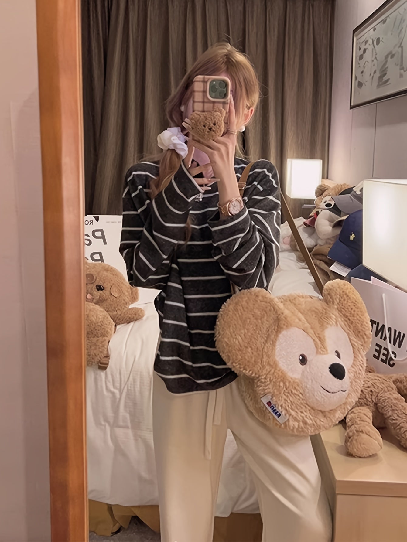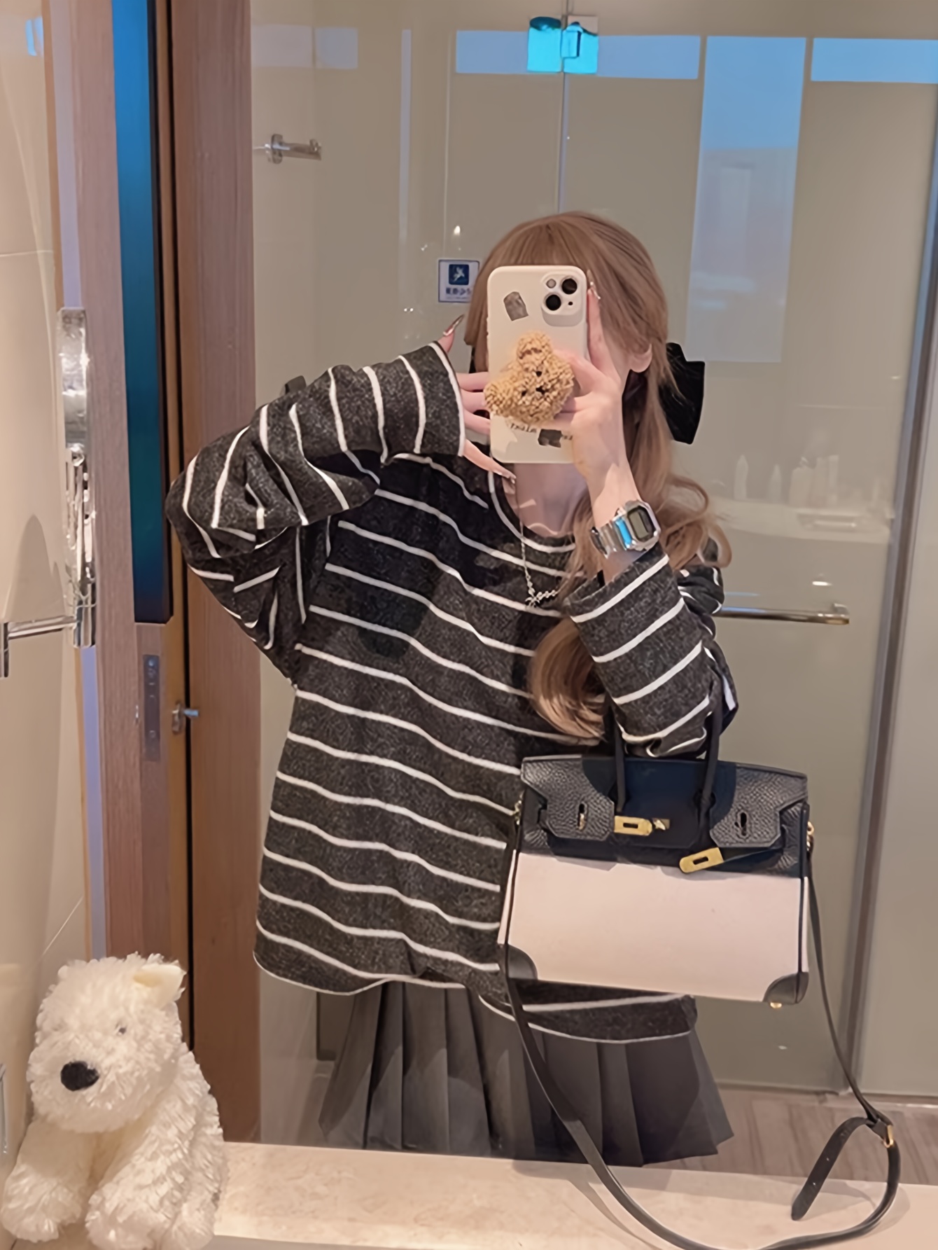 Asian Size Long Sleeve T-Shirt for Women, Lazy Style Loose Top, Fits 80-160 lbs