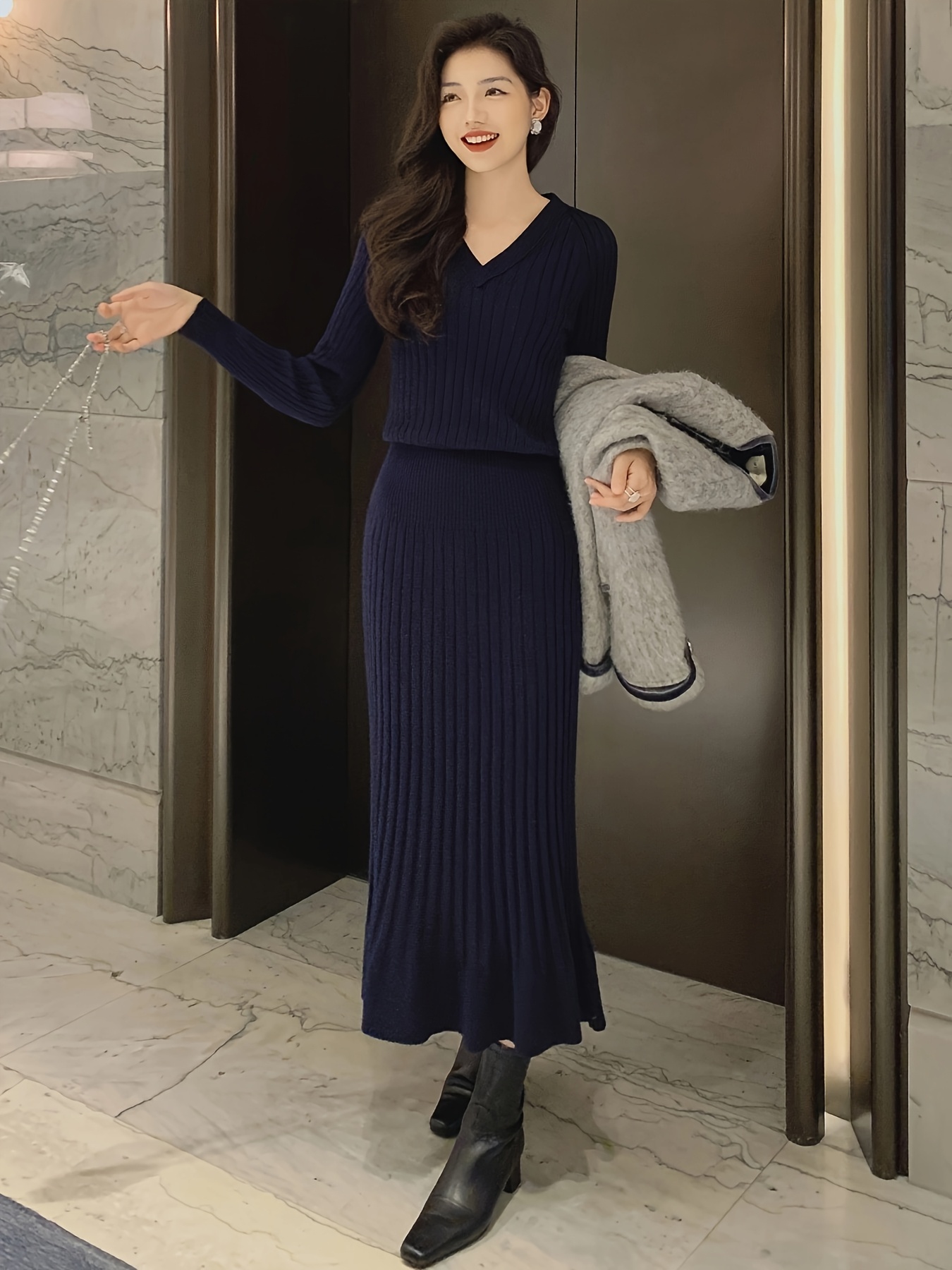 Meiyang Spotlight Knitted Dress, a Red Carpet Goddess V-Neck Fitted Mermaid Gown.