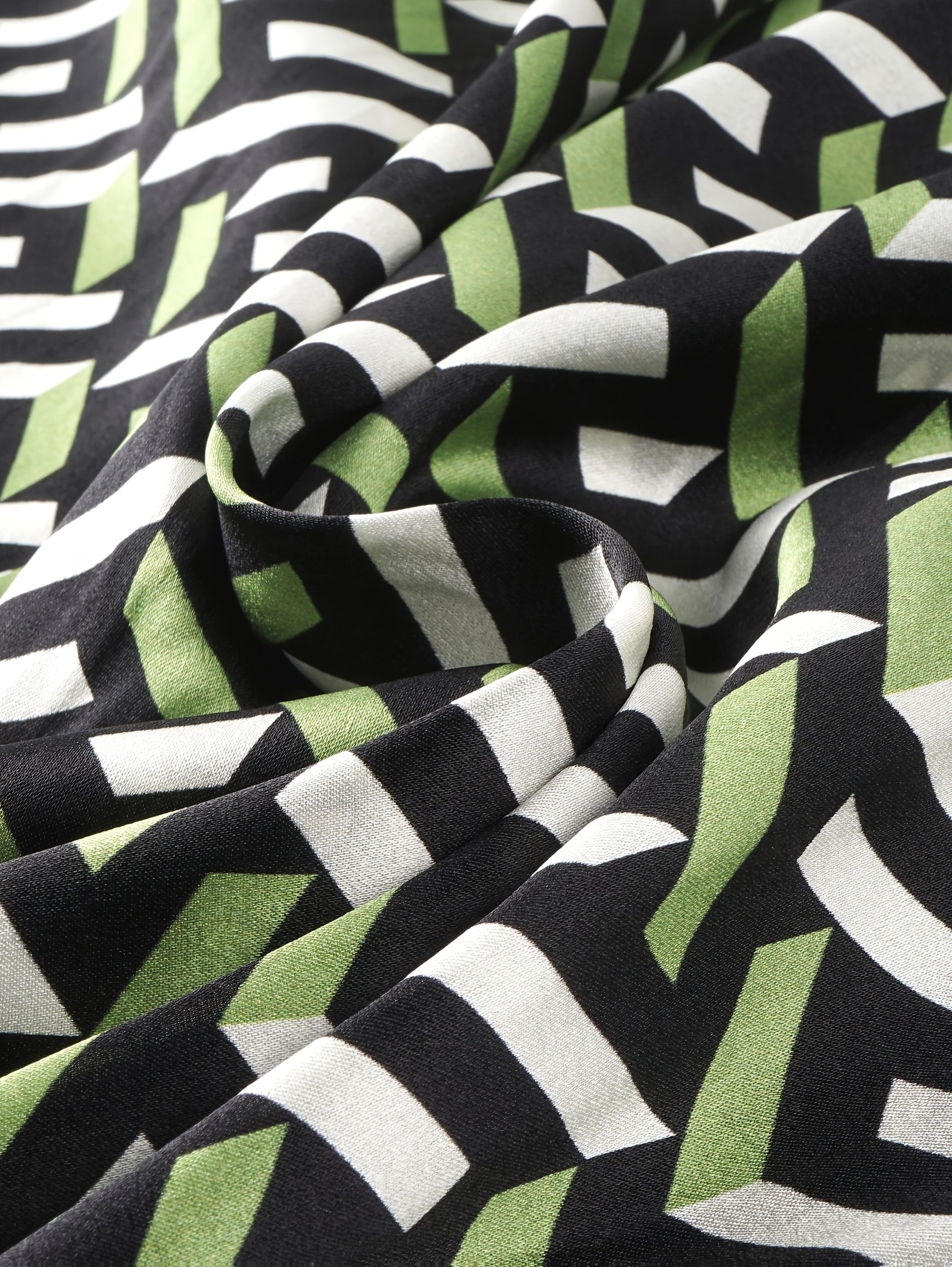 Women'S Elegant Black & Green Floral-like print - Breathable Formal & Casual Dresses